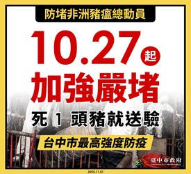 非洲豬瘟防疫進入最後關鍵期! 盧市長:10月27日即「自動加嚴」、最高強度力拚清零