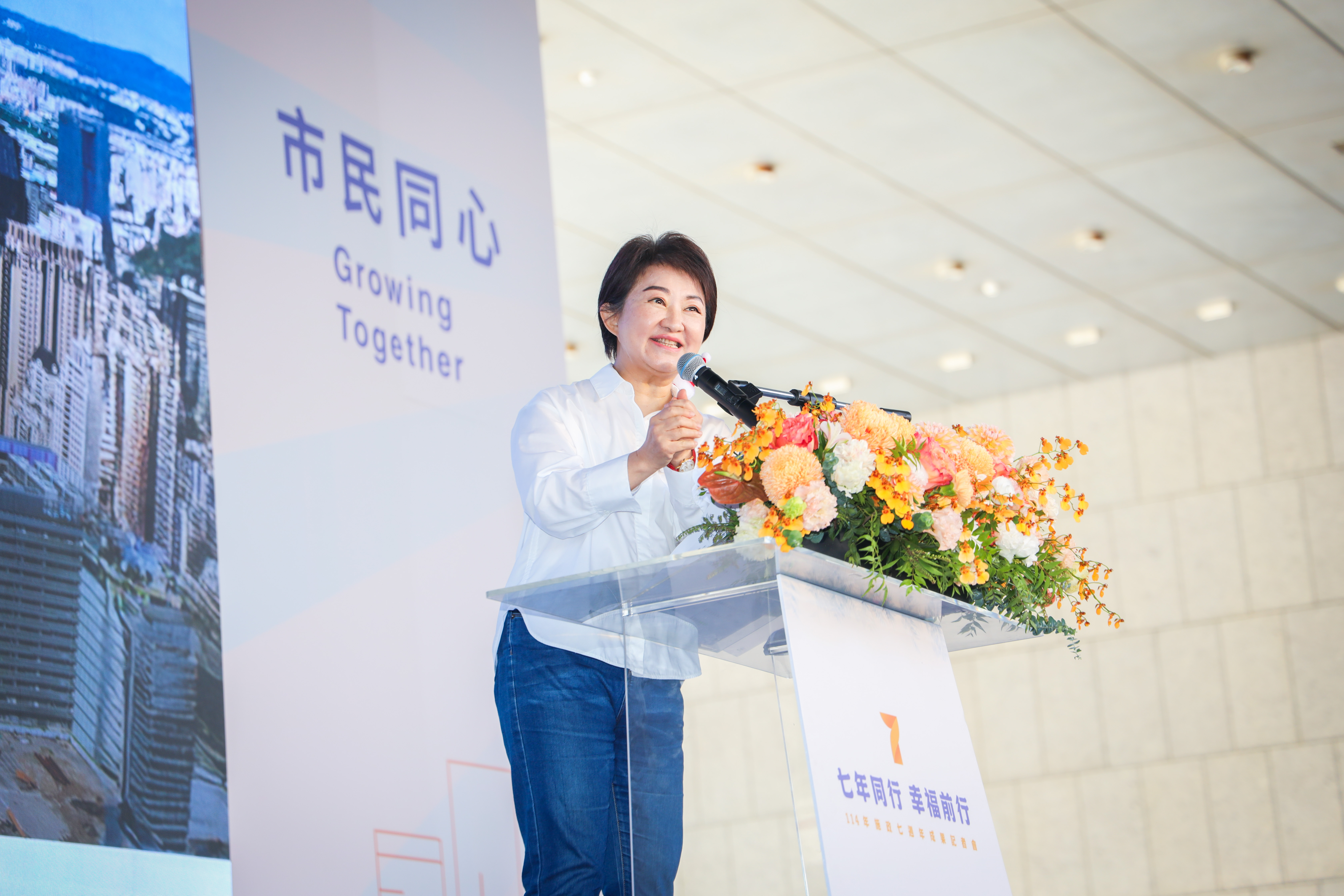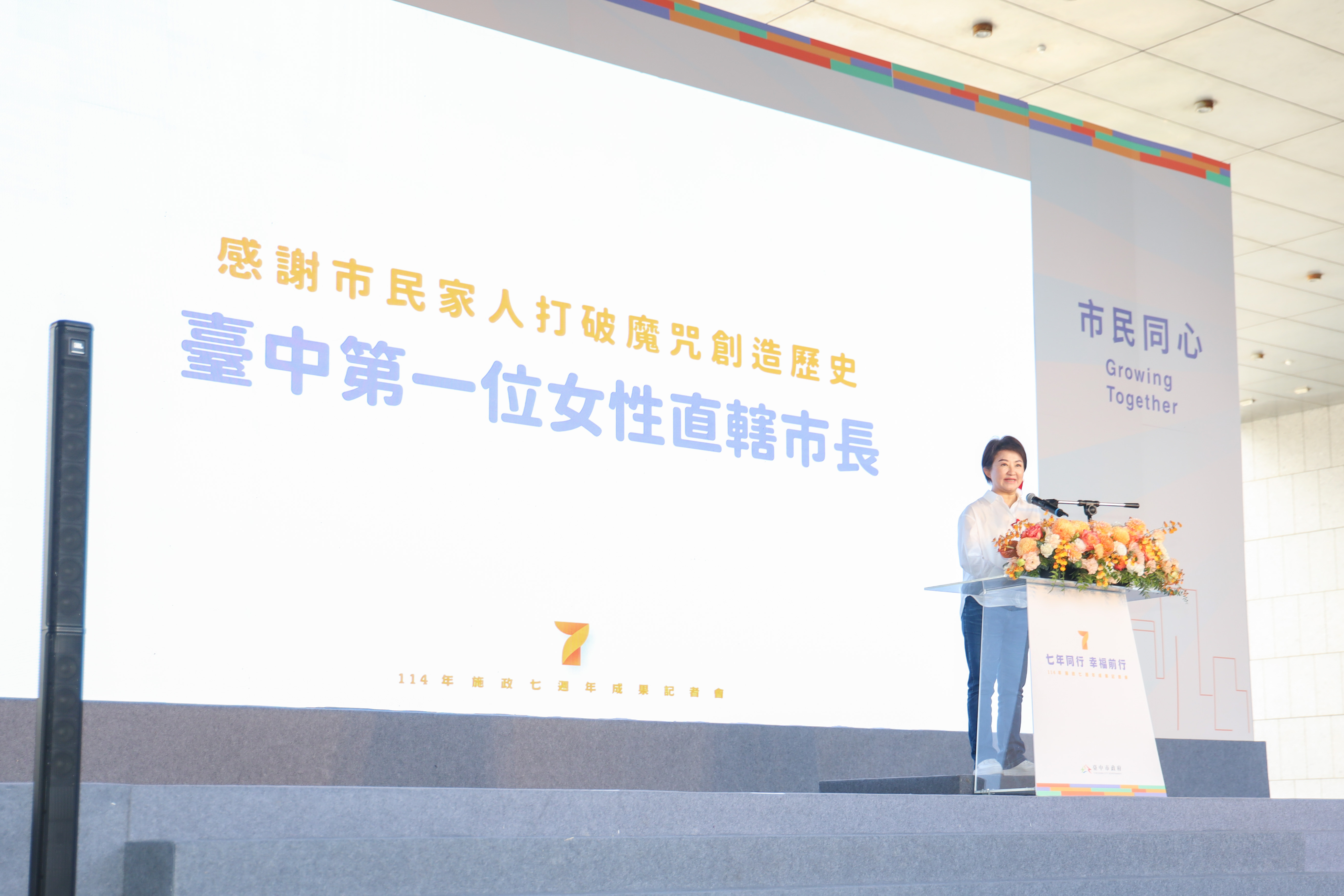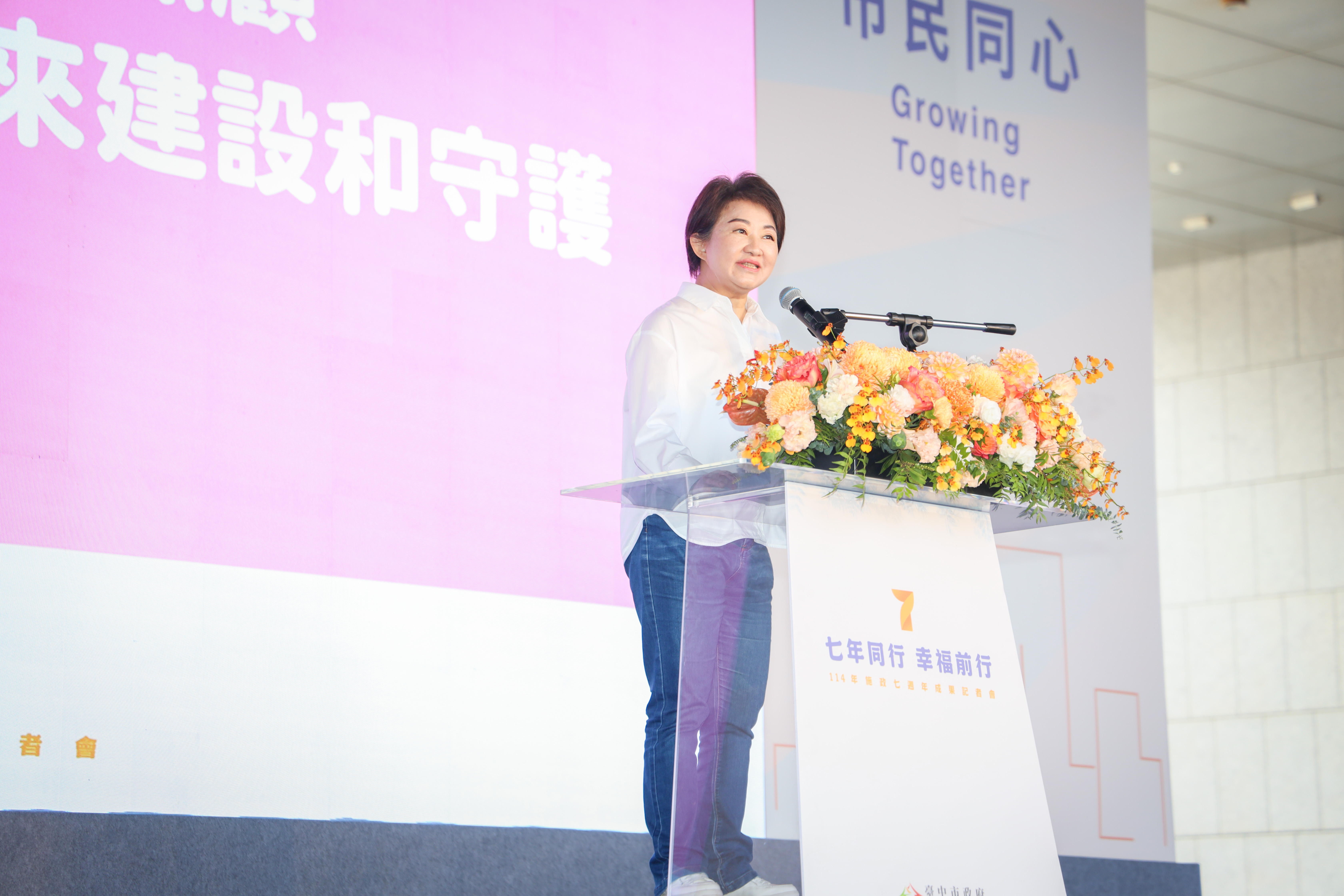 台中市長盧秀燕率領市府團隊執政滿7年,即將邁向第8年,今(24)日舉行施政7週年成果記者會,以「七年同行、幸福前行」為主軸,向市民報告7年來的施政成果。她特別回顧第一年就職典禮上許下的諾言,以「顧家最重要的三件事」巧妙比喻市政治理,感謝市民家人一路相挺與支持,她將為台中奮鬥到最後一秒鐘。