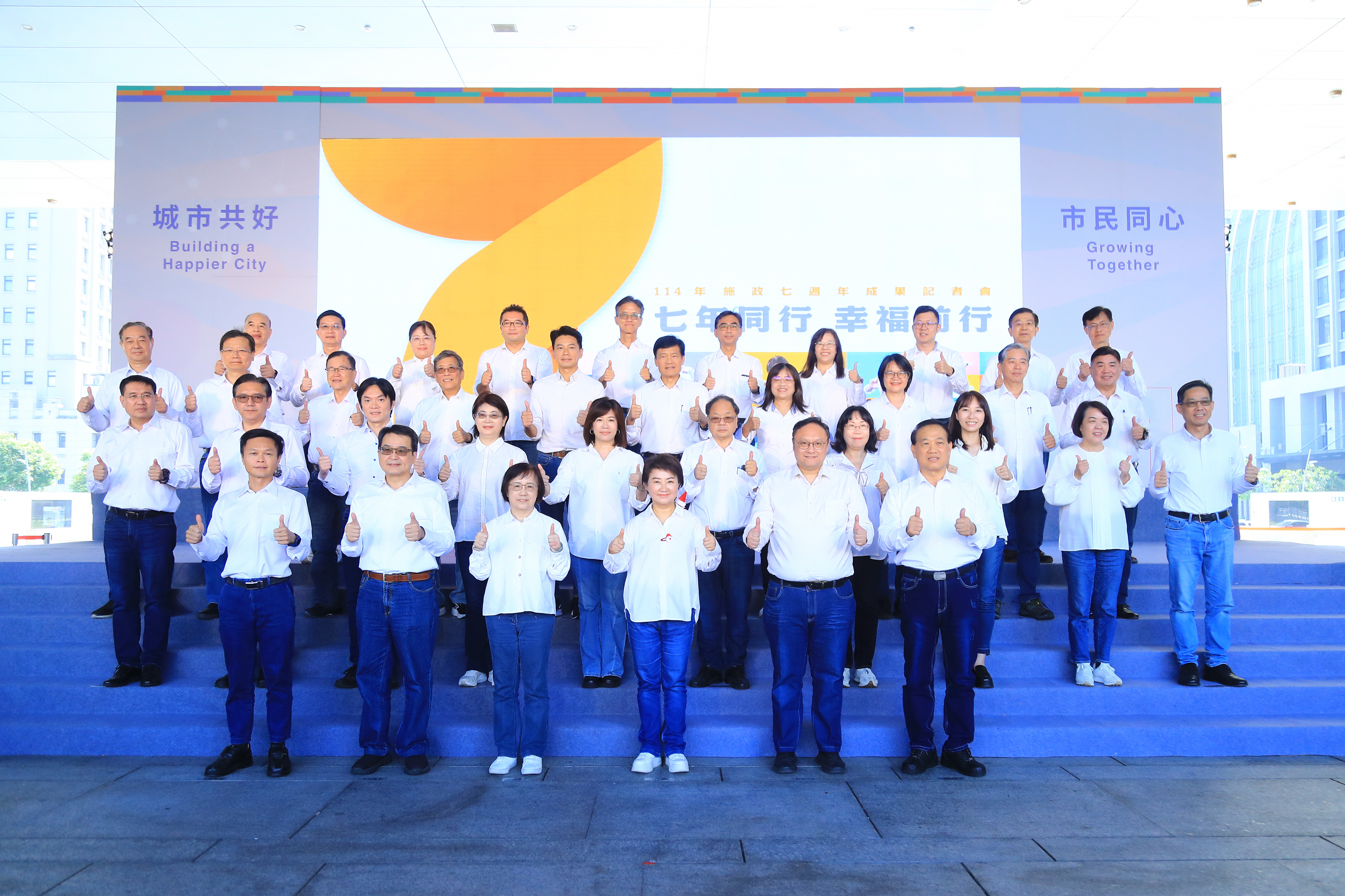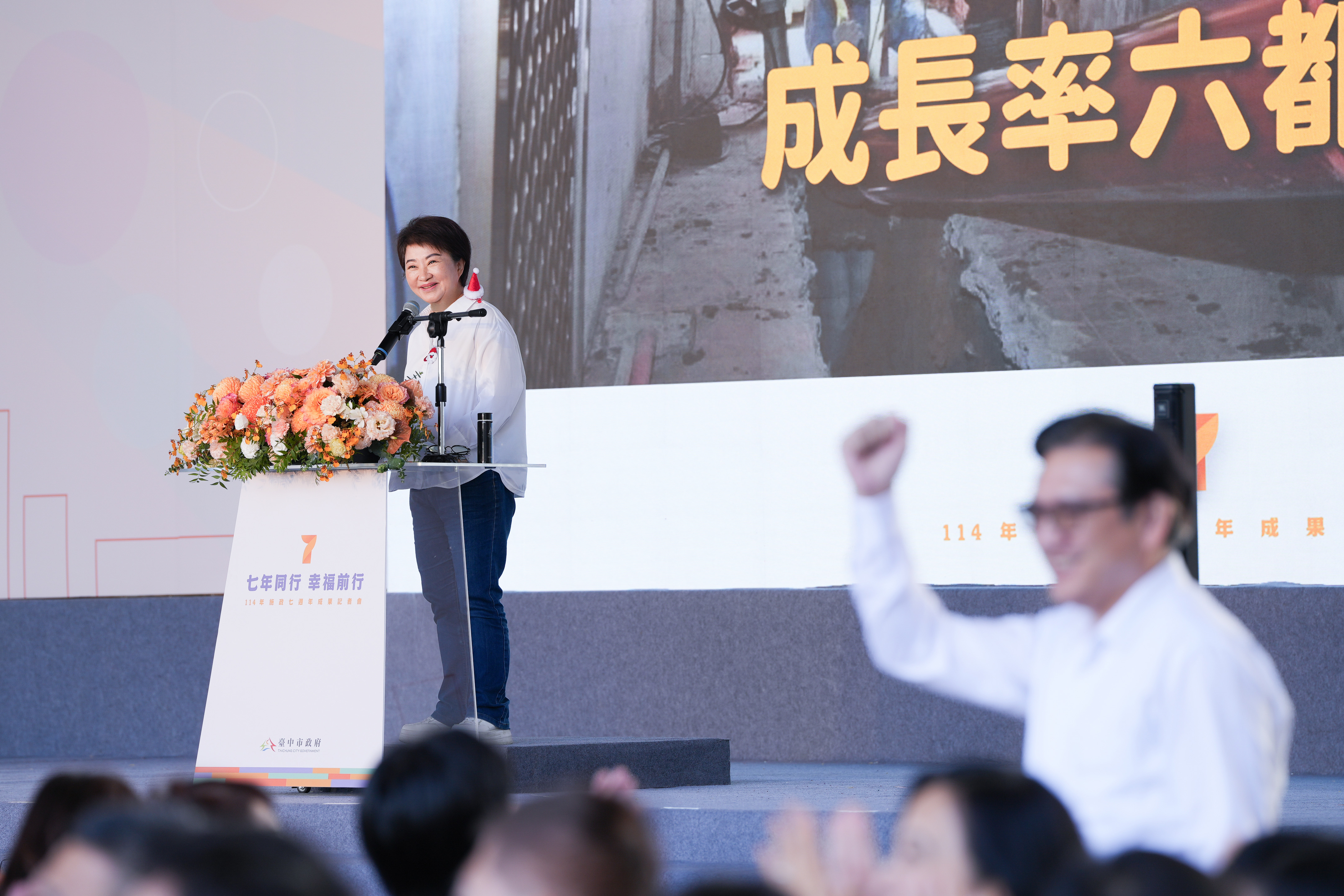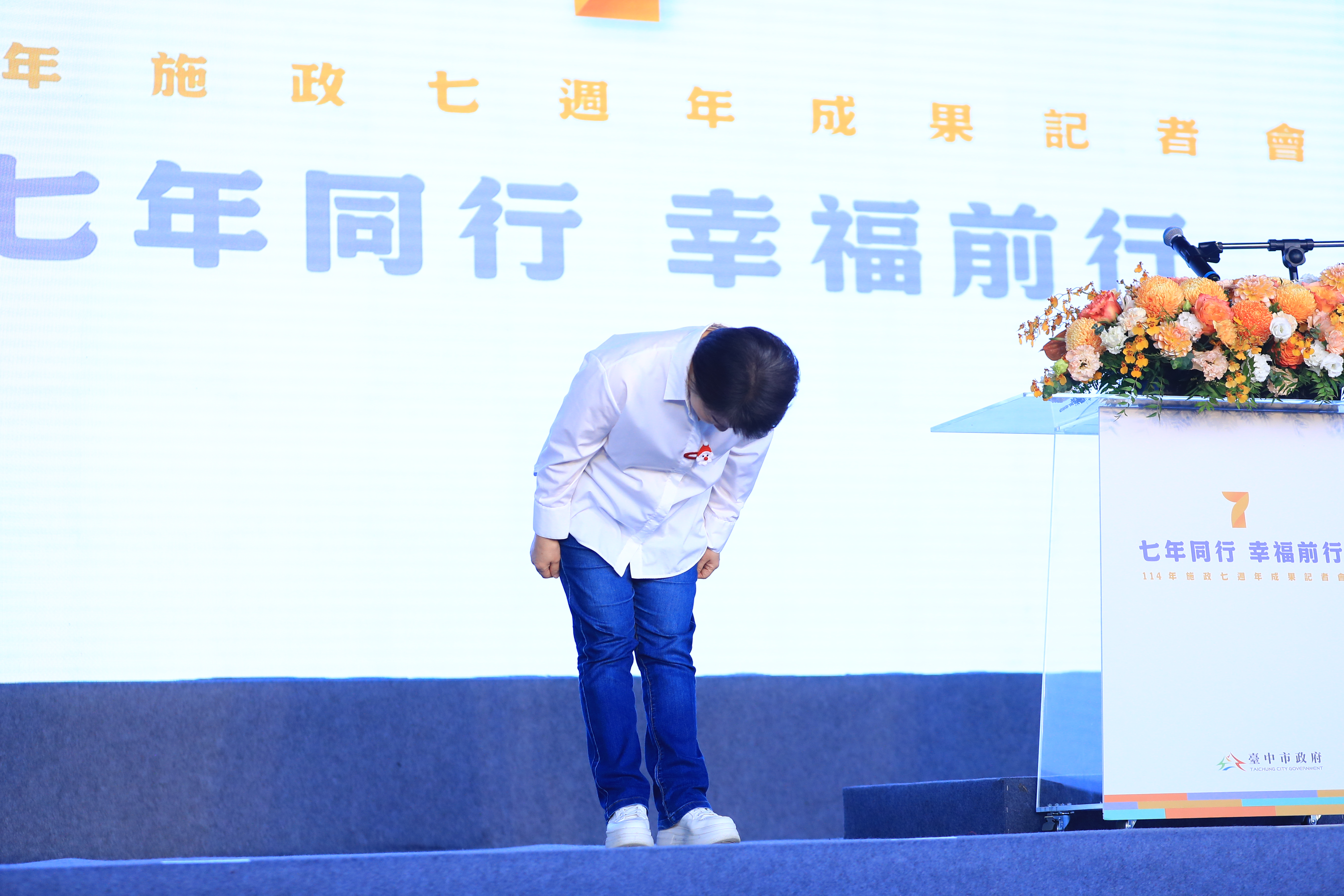 台中市長盧秀燕率領市府團隊執政滿7年,即將邁向第8年,今(24)日舉行施政7週年成果記者會,以「七年同行、幸福前行」為主軸,向市民報告7年來的施政成果。她特別回顧第一年就職典禮上許下的諾言,以「顧家最重要的三件事」巧妙比喻市政治理,感謝市民家人一路相挺與支持,她將為台中奮鬥到最後一秒鐘。