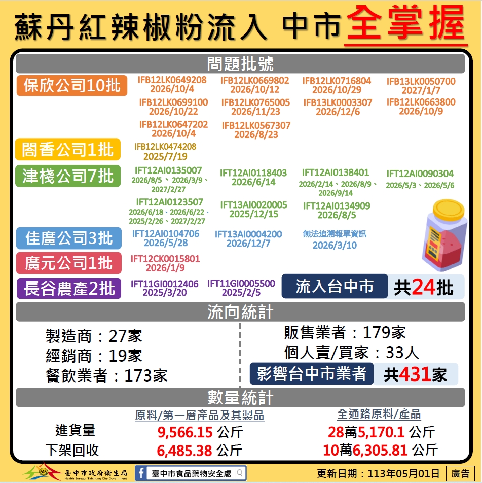 辣椒粉檢出蘇丹色素不合格專區(食藥署)
