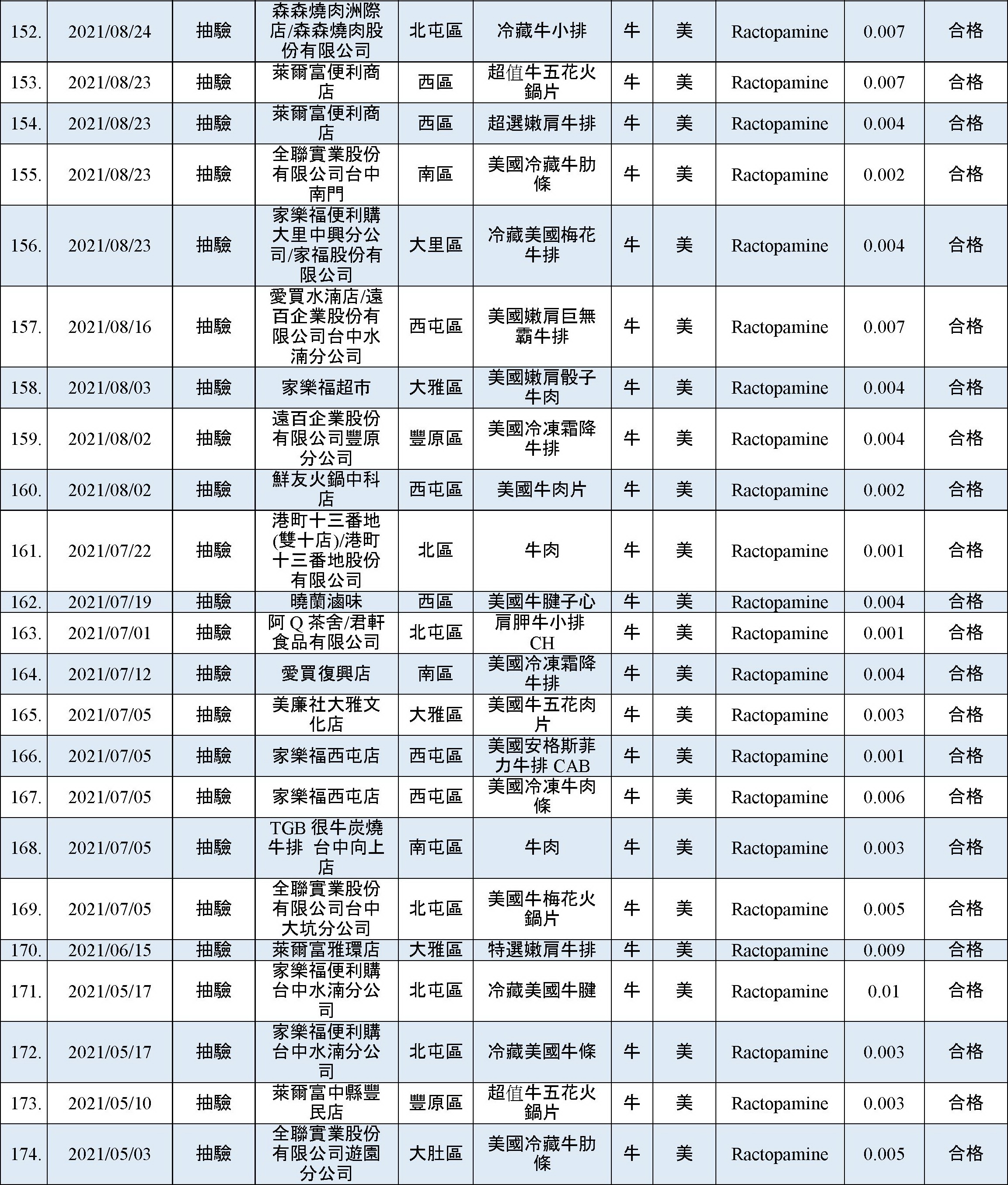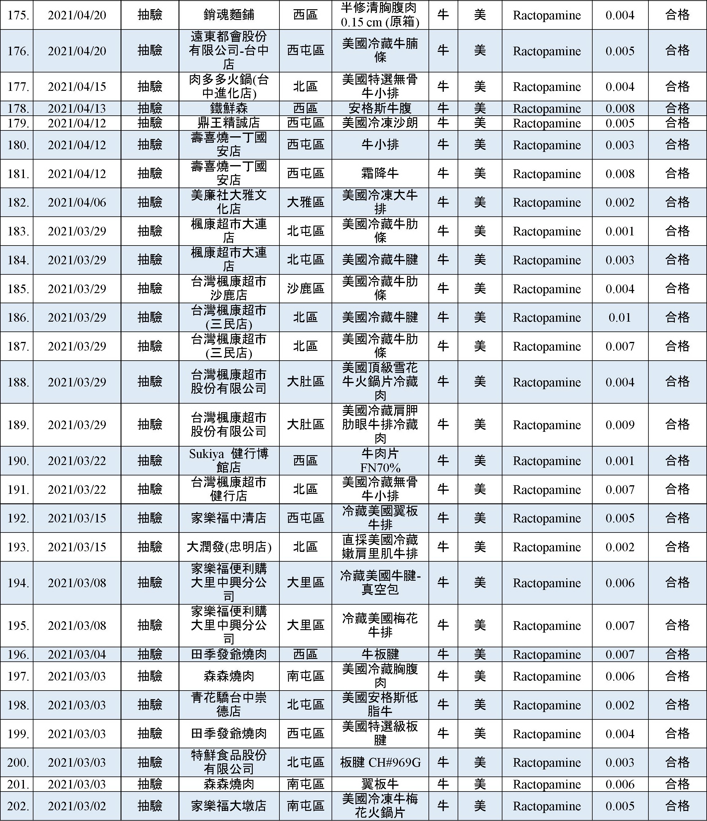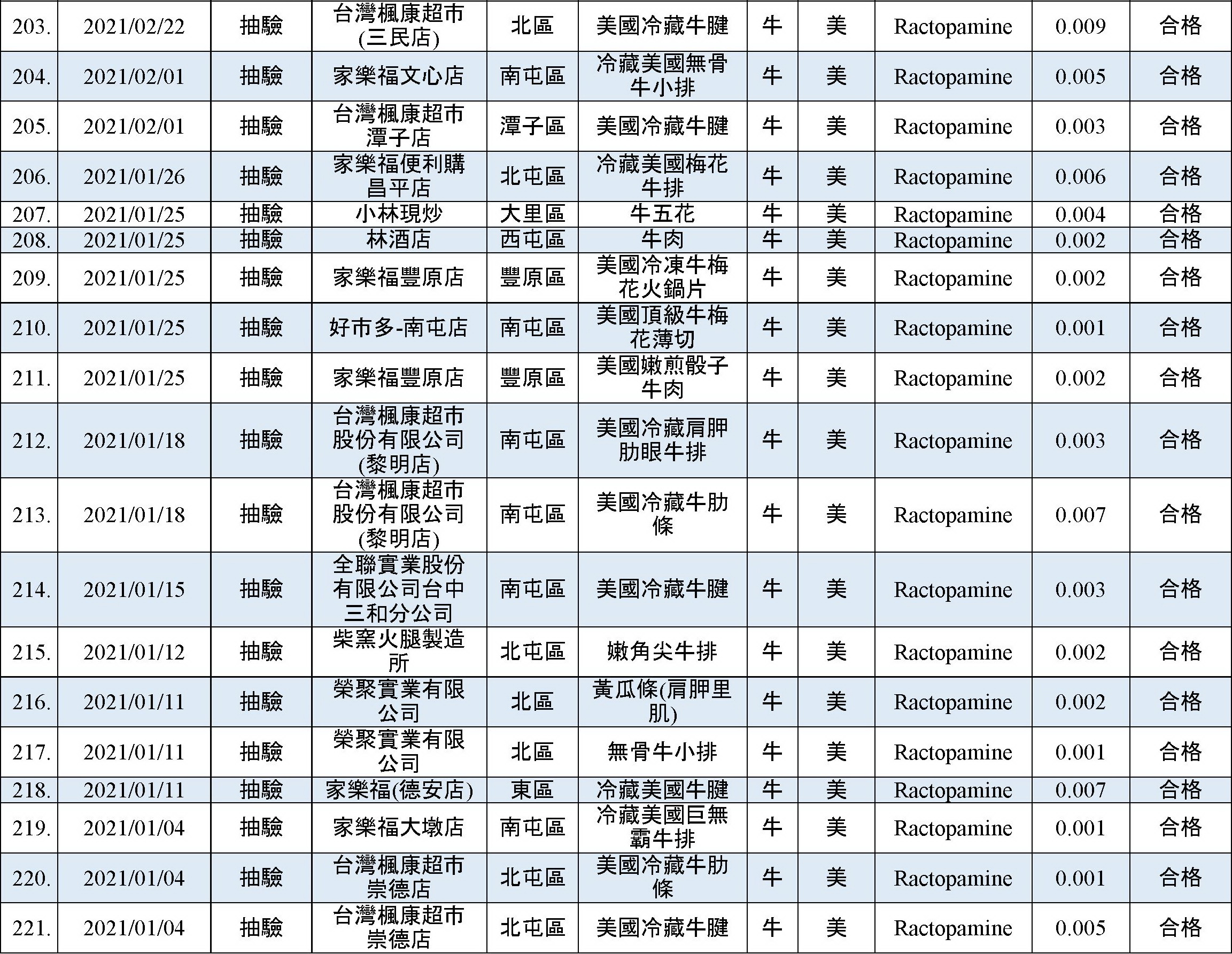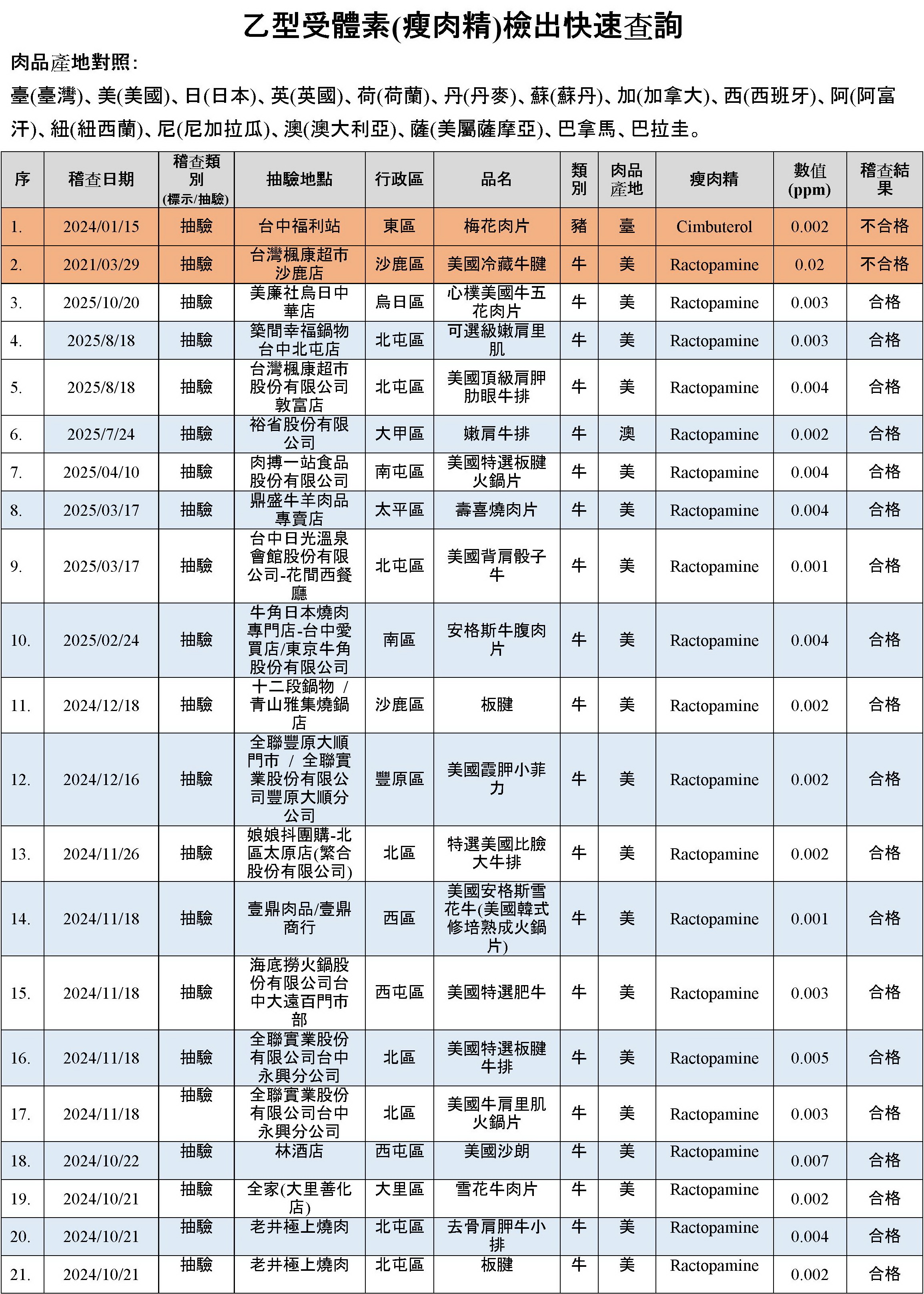 乙型受體素(瘦肉精)檢出快速查詢