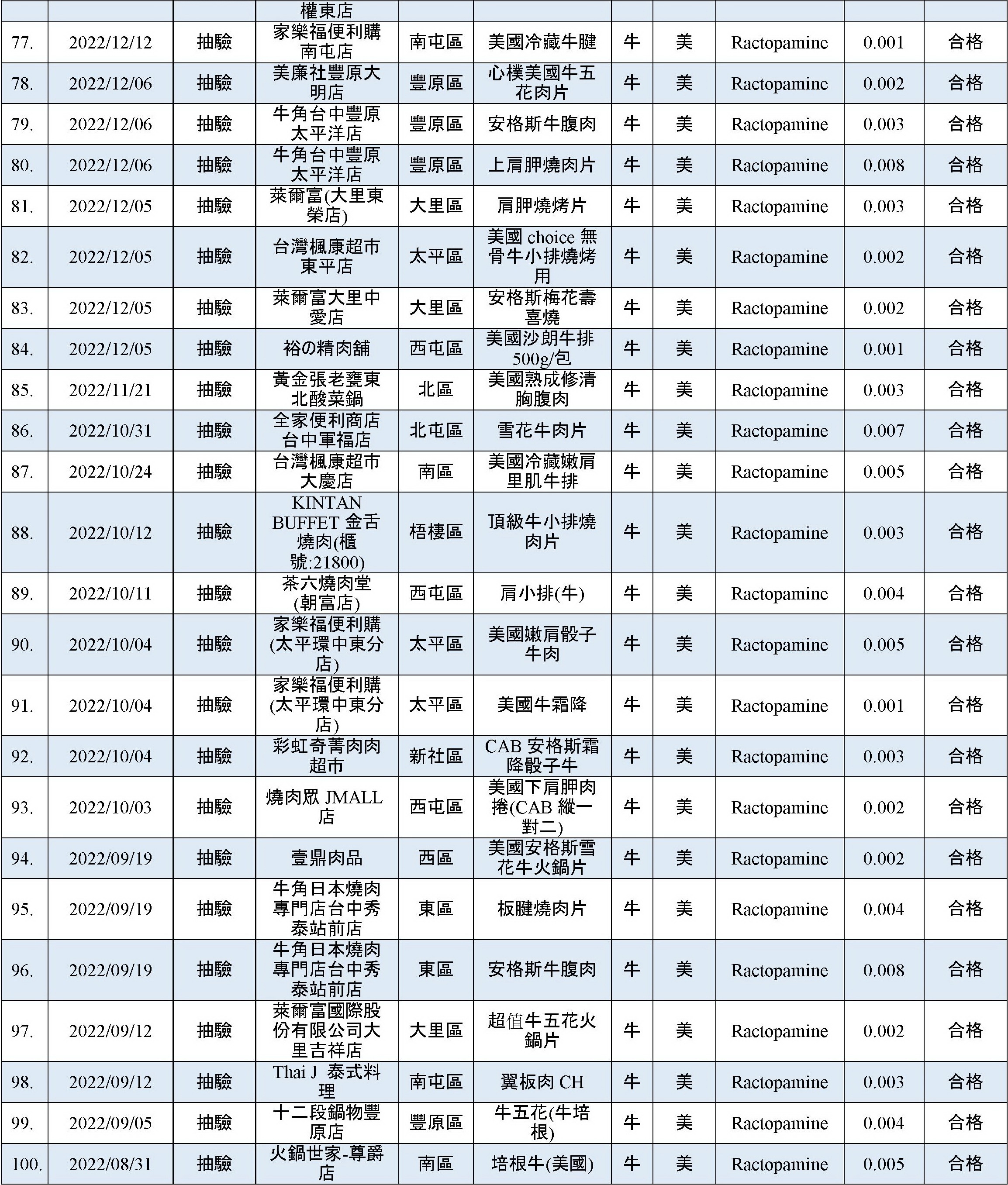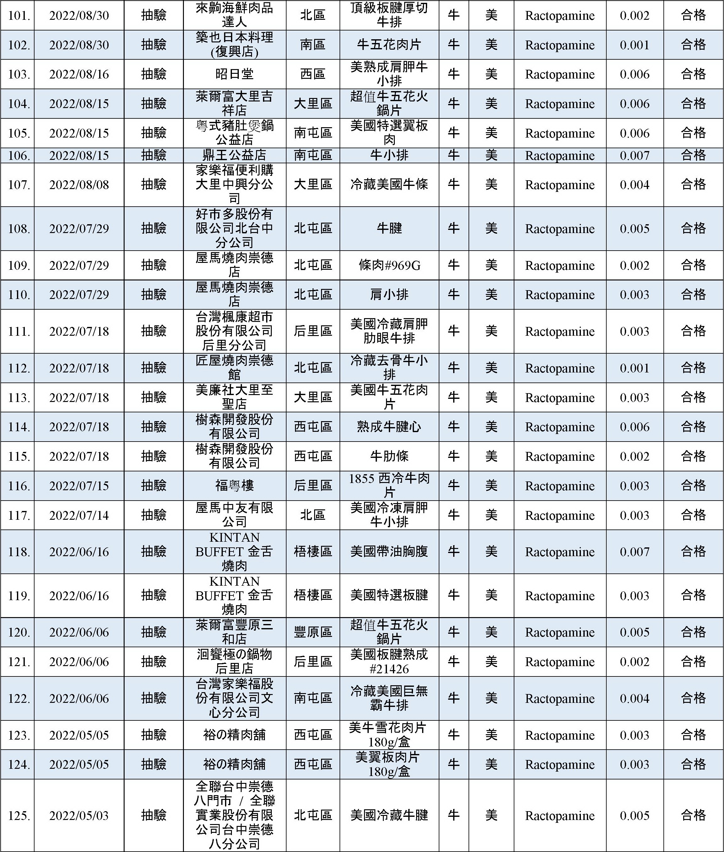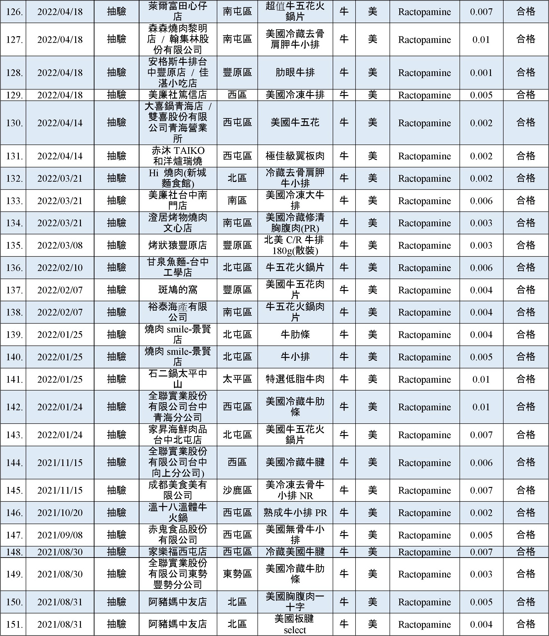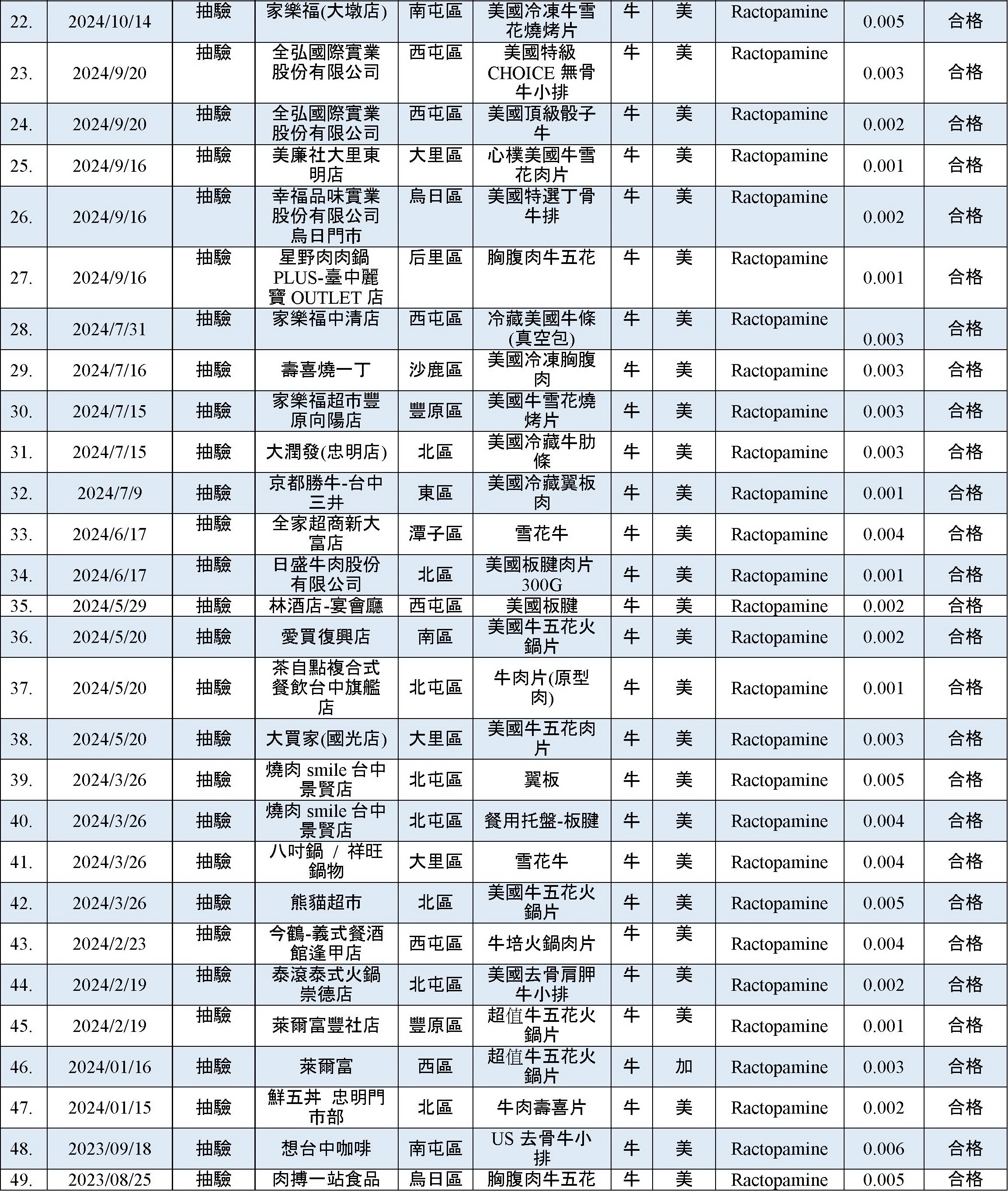 乙型受體素(瘦肉精)檢出快速查詢