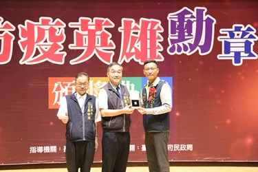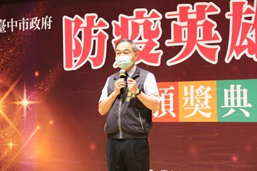台中市政府今(19)日舉行「防疫英雄勳章頒獎典禮」,表揚137組民間團體與個人於疫情期間的善心捐贈及付出,還有堅守防疫第一線的民政團隊同仁232名。「感恩!有您們真好!」副市長黃國榮代表市長盧秀燕出席頒獎,感謝每位防疫英雄的奉獻,讓防疫工作順利推動。他也提醒,抗疫還沒結束,期勉大家持續落實防疫、支持市府,共同守護我們的城市。