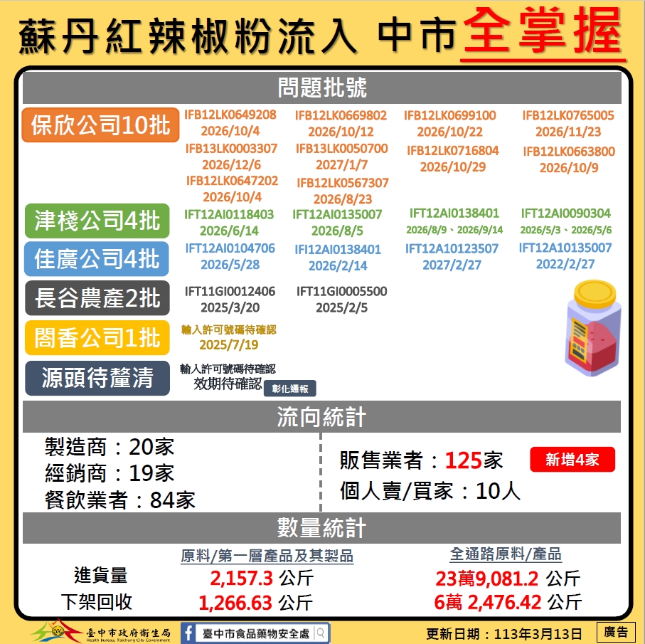 辣椒粉檢出蘇丹色素不合格專區(食藥署)