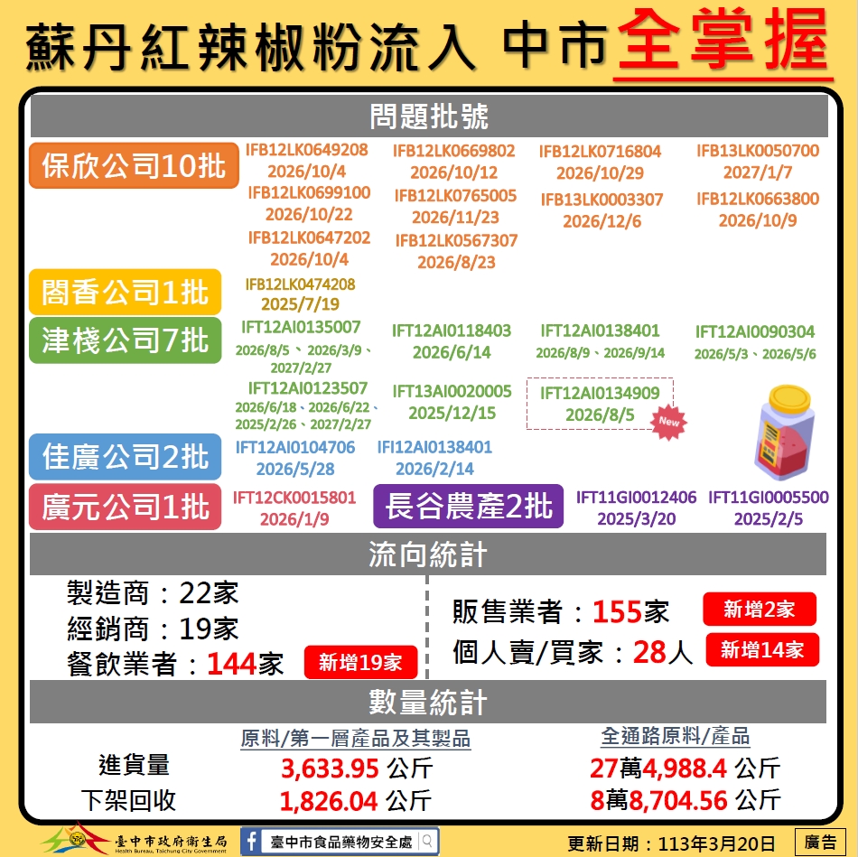 辣椒粉檢出蘇丹色素不合格專區(食藥署)