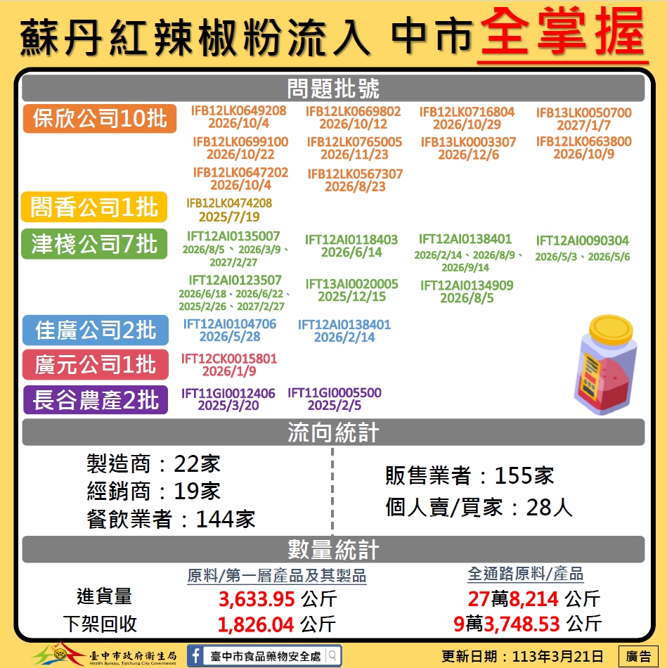 辣椒粉檢出蘇丹色素不合格專區(食藥署)
