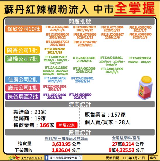 辣椒粉檢出蘇丹色素不合格專區(食藥署)