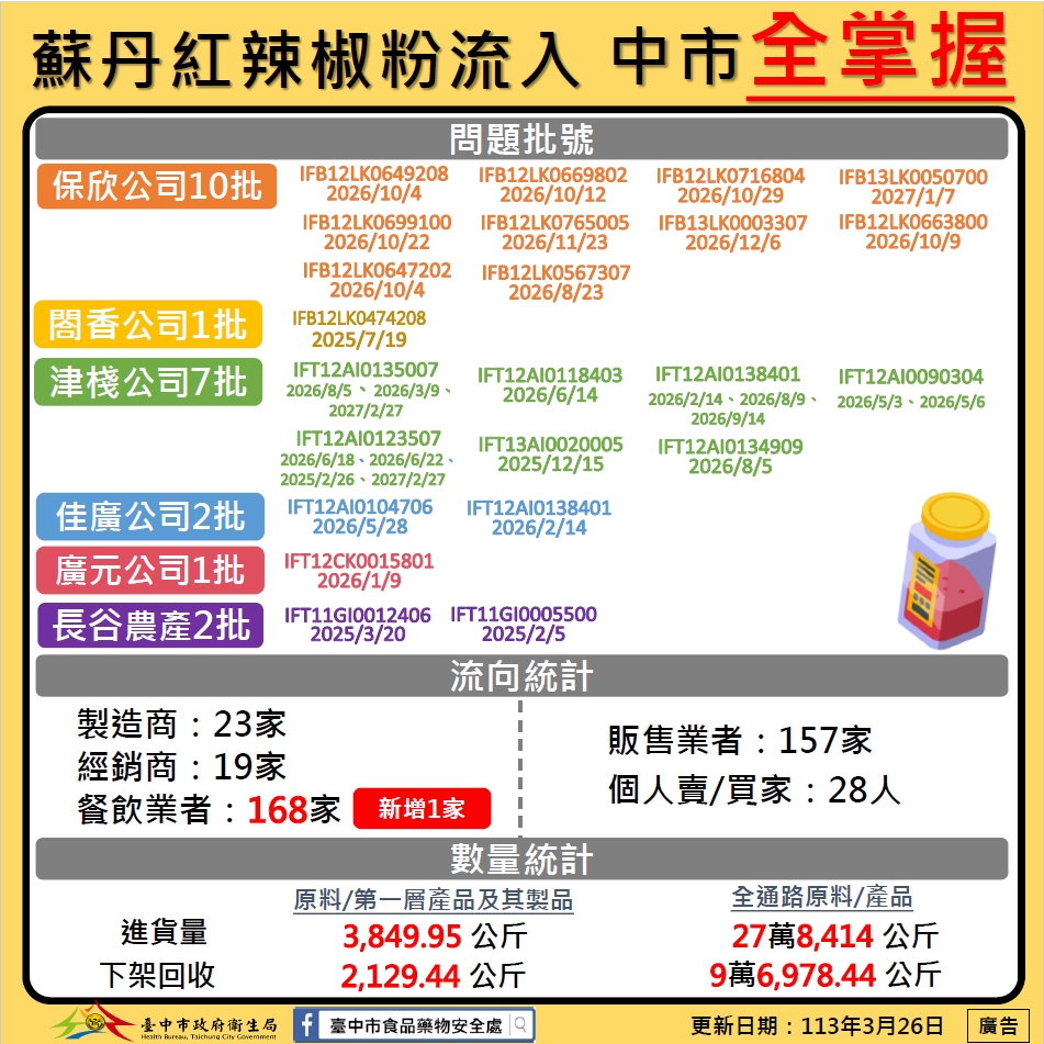 辣椒粉檢出蘇丹色素不合格專區(食藥署)