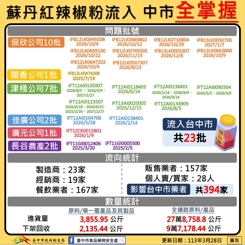 辣椒粉檢出蘇丹色素不合格專區(食藥署)
