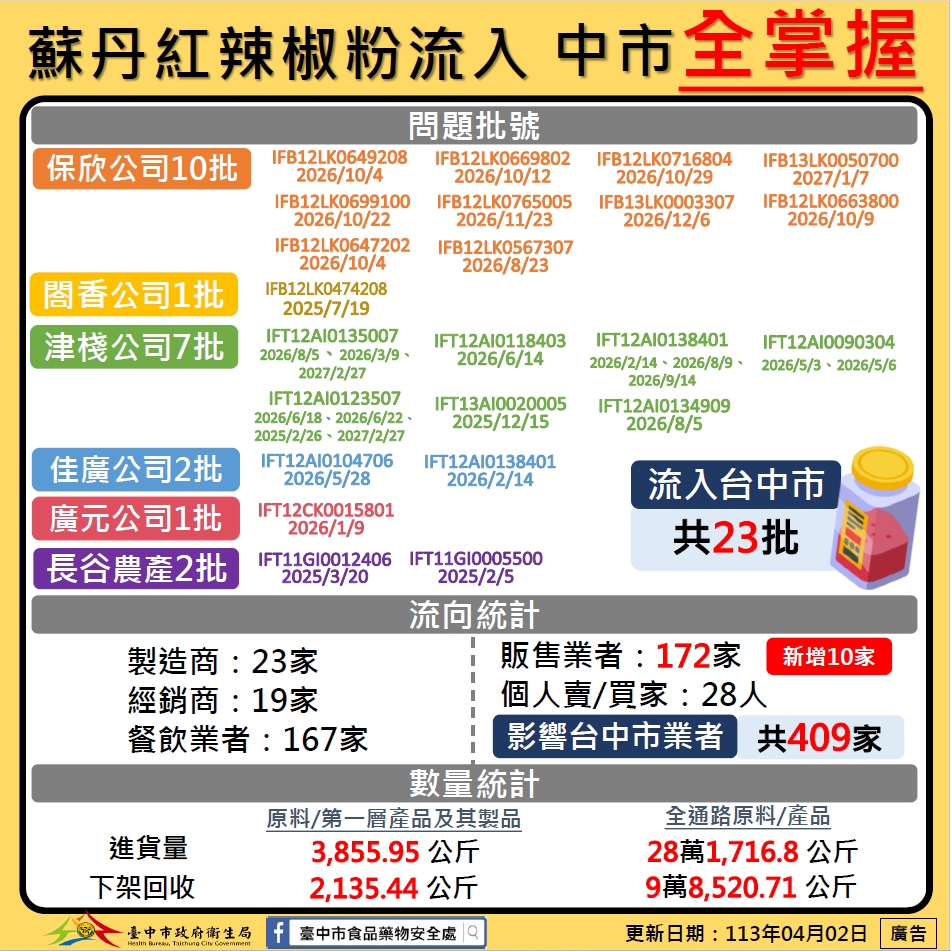 辣椒粉檢出蘇丹色素不合格專區(食藥署)