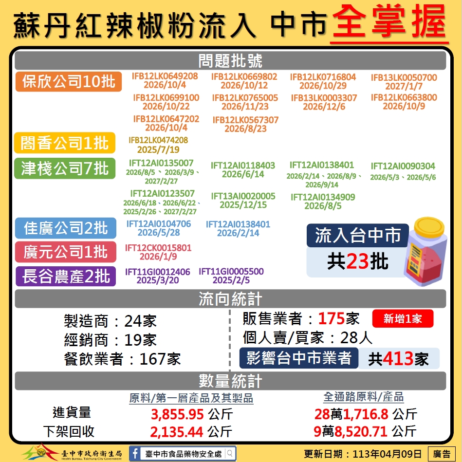 辣椒粉檢出蘇丹色素不合格專區(食藥署)