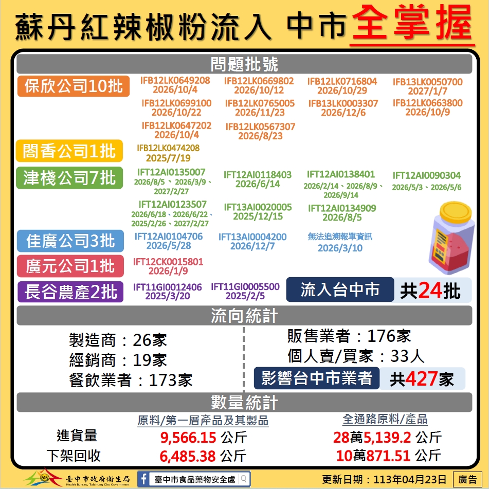 辣椒粉檢出蘇丹色素不合格專區(食藥署)
