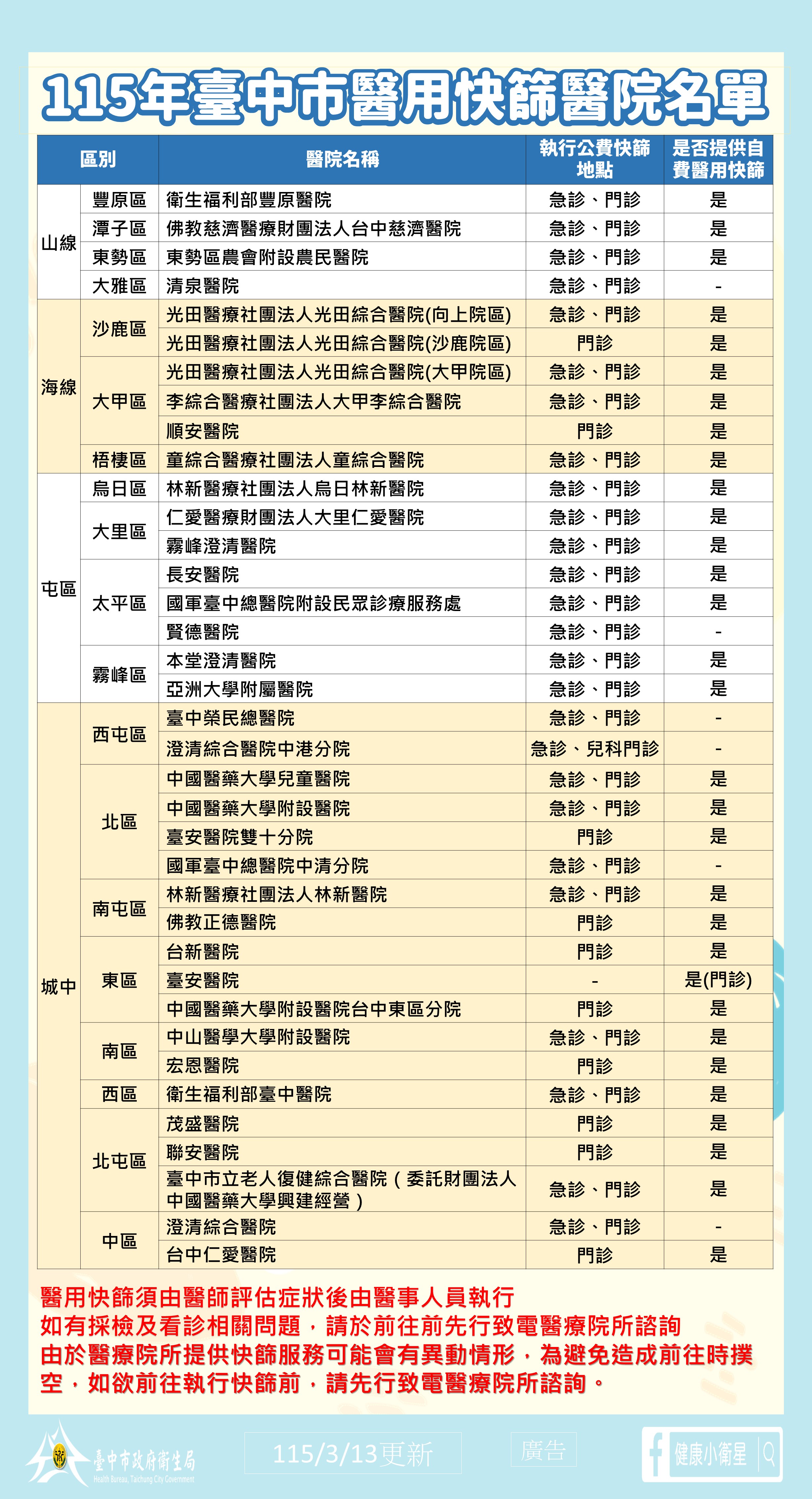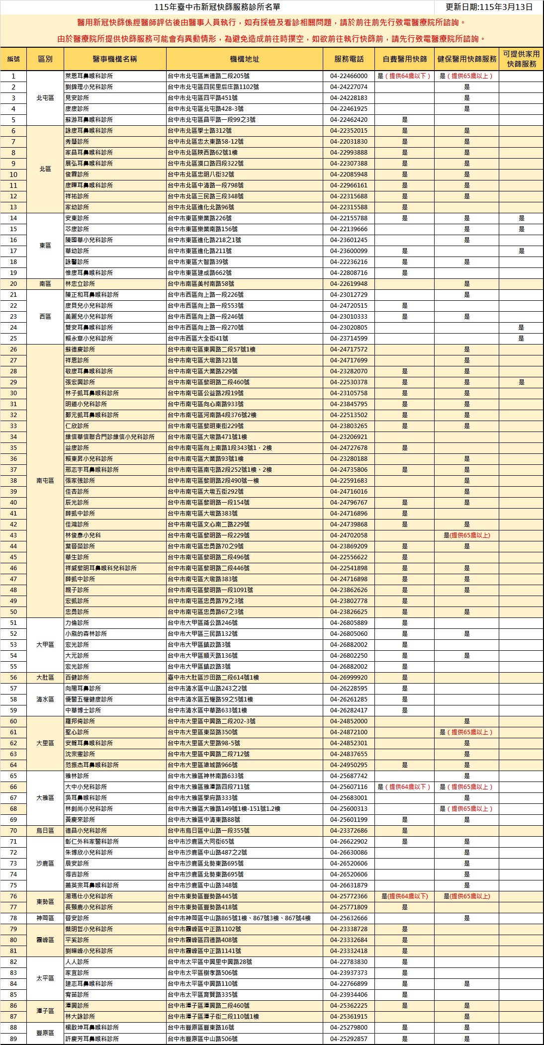 醫院版本-115年臺中市醫用快篩服務醫院名單(20260108更) 115年臺中市COVID-19醫用快篩服務醫院名單、醫用快篩服務診所名單及家用快篩販售藥局名單(115-01-08更新) >家用快篩販售藥局名單
