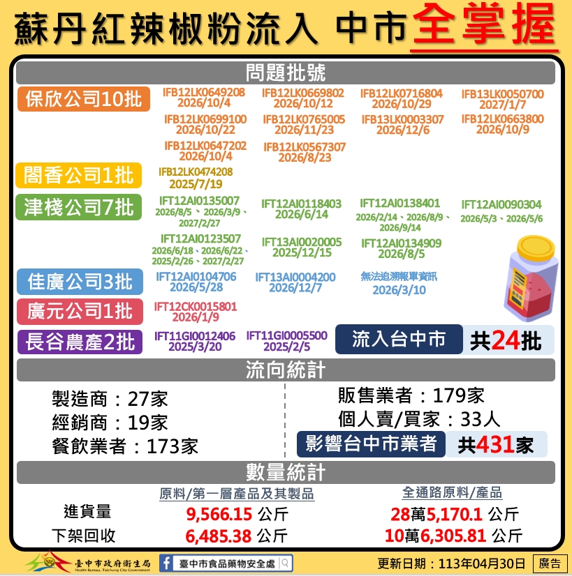 辣椒粉檢出蘇丹色素不合格專區(食藥署)