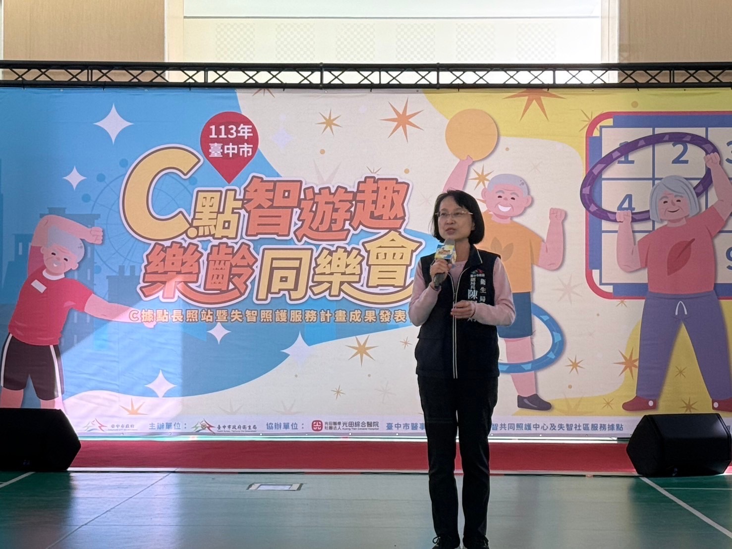台中市政府衛生局昨(27)日在北區國民運動中心舉辦C據點長照站暨失智照護服務計畫成果發表會,今年延續結合失智照護服務計畫聯合辦理成果發表會,現場集結約500位C據點、失智共照中心及失智社區服務據點的夥伴、長輩及家屬齊聚同樂。衛生局表示,此次活動精彩豐富,包括樂齡同樂運動會、據點特色攤位展出非藥物支持性治療課程體驗等,也邀請社會局、消防局、警察局設攤宣導,展現照護成果,氣氛熱鬧。