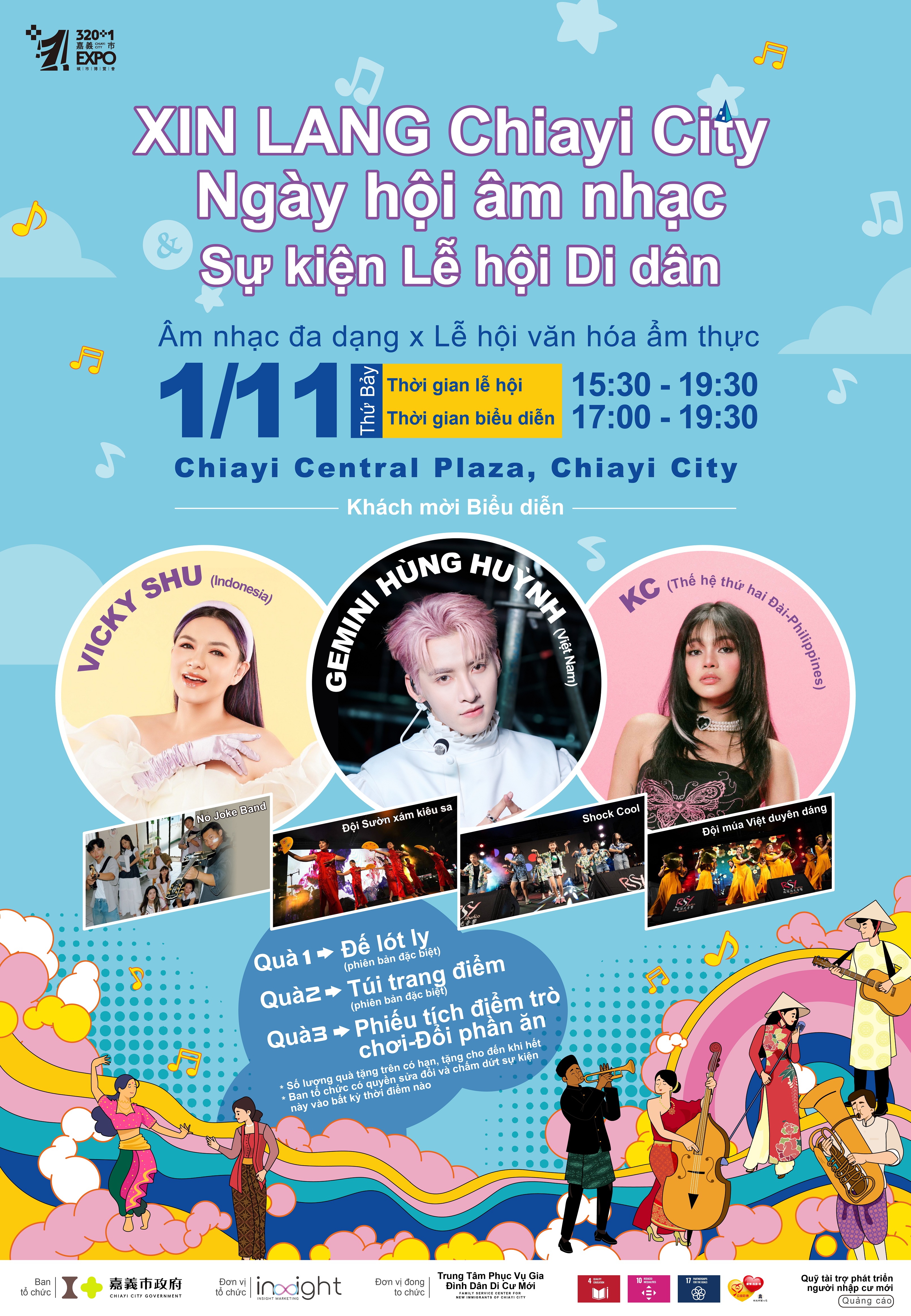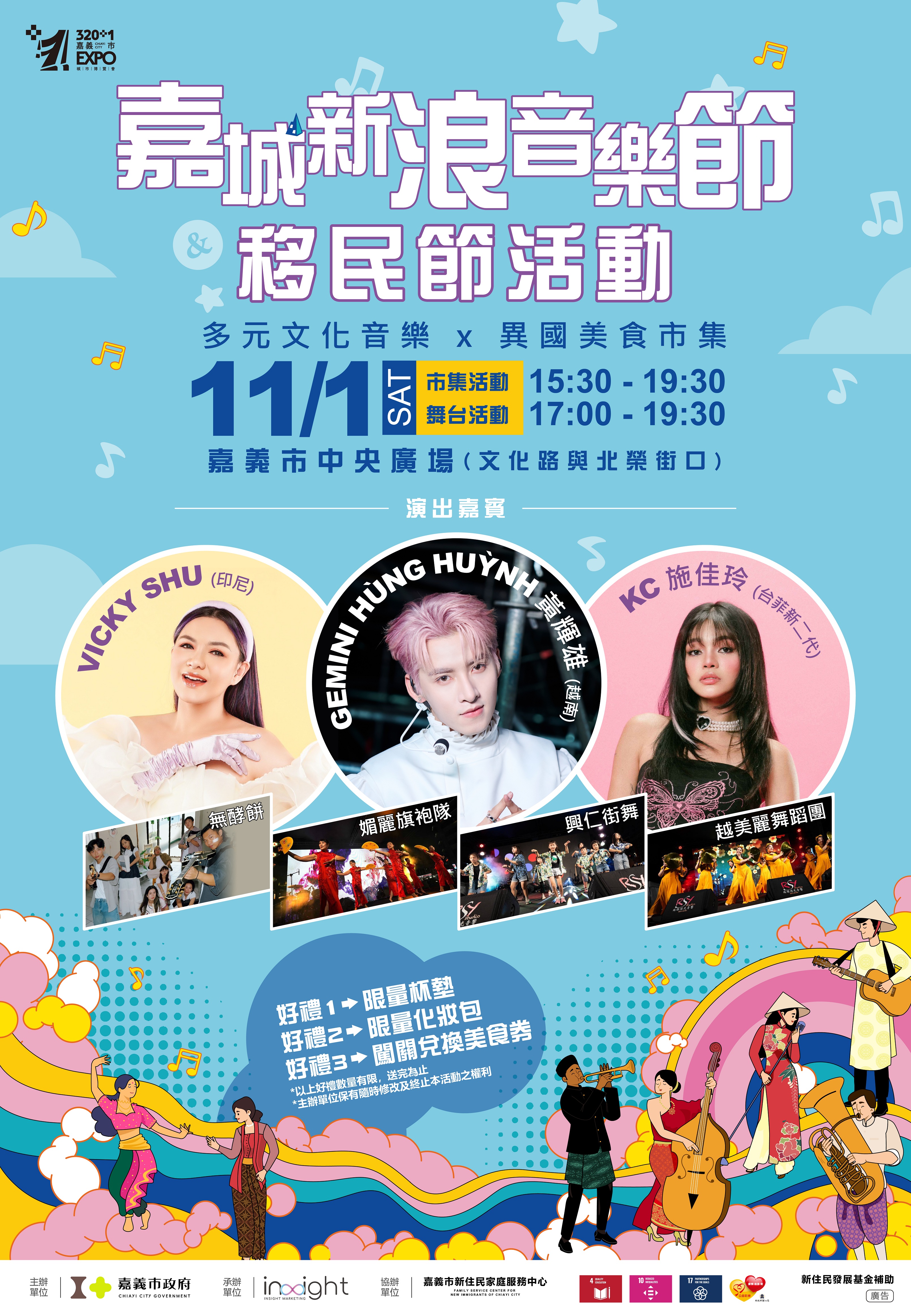 旨揭活動訂於114年11月1日(星期六)15時30分至19時30分假嘉義市中央廣場(嘉義市文化路與北榮街口)辦理,活動邀請來自越南、印尼的異國歌手、新住民及新二代表演團體,以音樂舞蹈的交流形式進行異國音樂文化演出,並設置異國美食文創市集攤位,推動多元族群共融,歡迎踴躍參與。